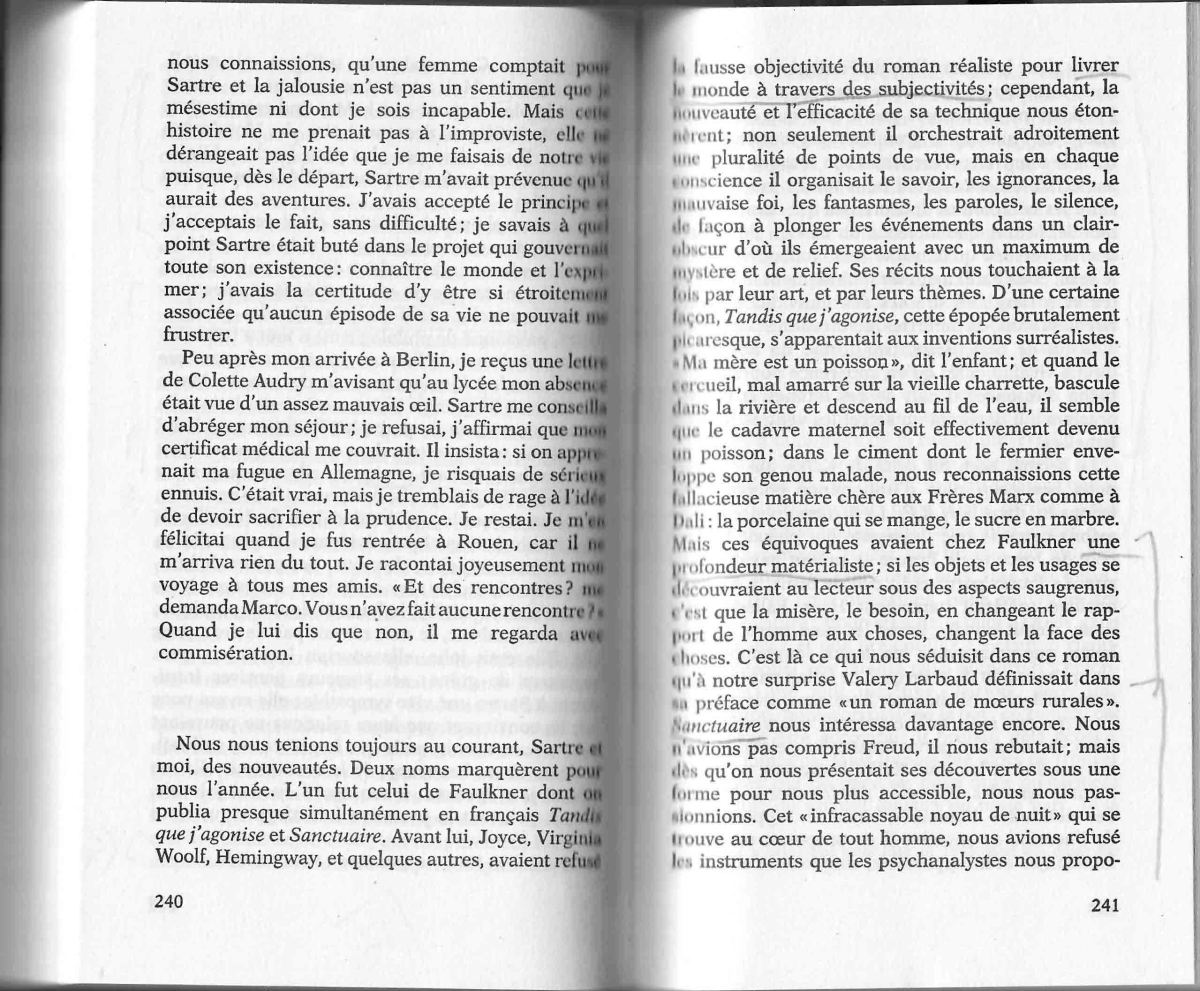 11/09/2017 Beauvoir-La force de l’âge 240-241 Published at 2559 × 2114 in Simone de Beauvoir: “A fondura materialista da obra de Faulkner”