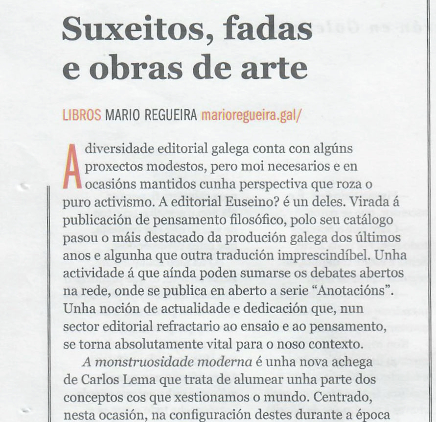 18/09/2019 Crítica Mario Regueira-Sermos Published at 891 × 861 in Mario Regueira escribe sobre “A monstruosidade moderna”