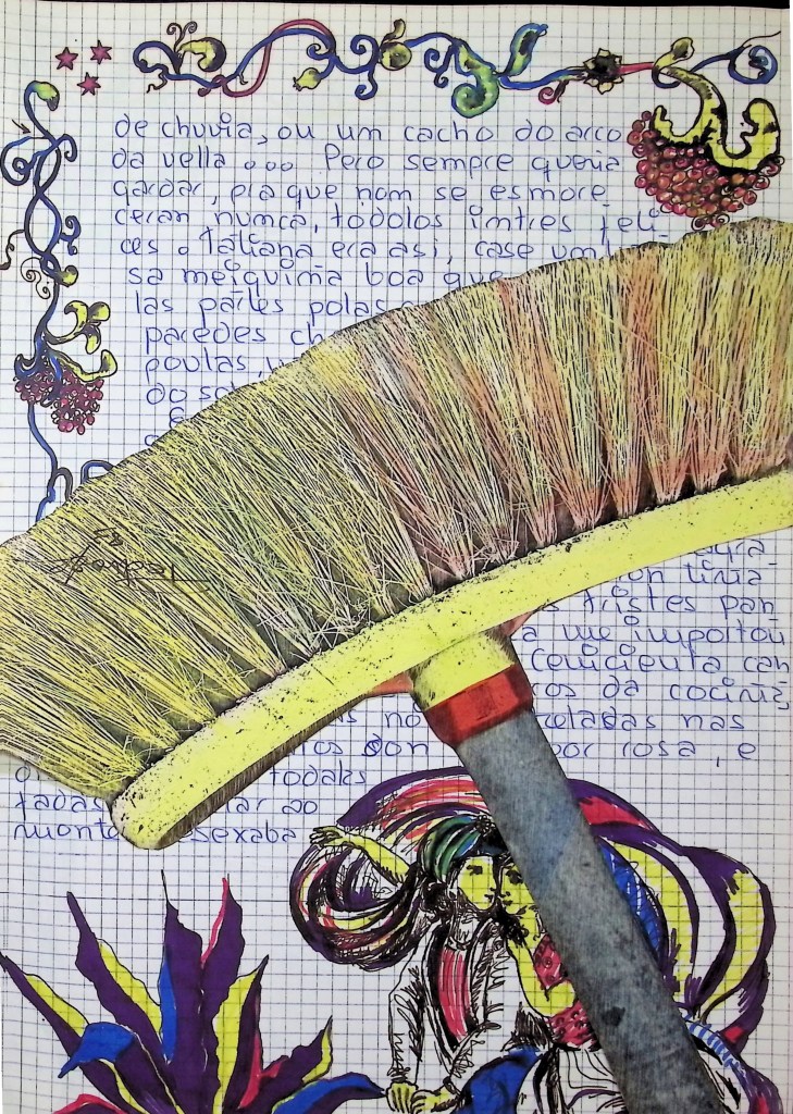 Descrición do caderno: Caderno cuxas follas están soltas, incompleto. Contén apuntamentos, relatos, ilustracións, flores prensadas, selos… Con respecto á numeración incompleta e ás ausencias, faltan ff. 3-4 e 72-73, ao principio cada carilla está numerada, a partir da folla 24 a numeración cambia (número por cada folio), entre o folio 41 e 42 hai un folio engadido non numerado, igual que entre o folio 45 e 46. Ao final do caderno, hai un conxunto de folios sen numerar.