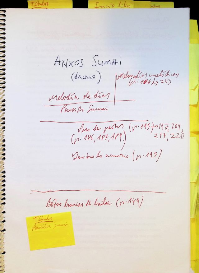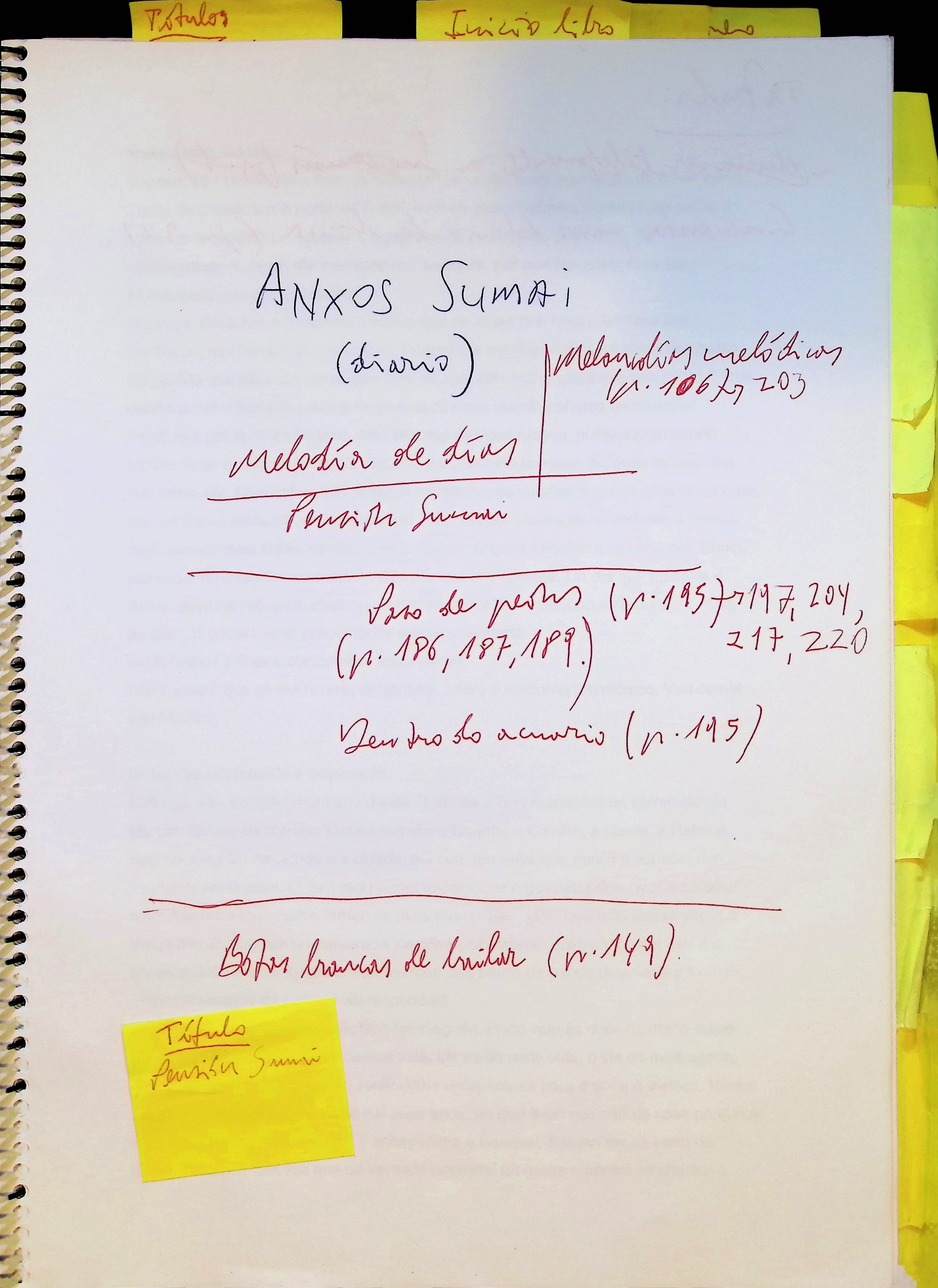 Descrición da colección: O Fondo Anxos Sumai consta de catro cadernos manuscritos dos anos 1982, 1984-1985 e 1986, xunto cun amplo conxunto de relatos (publicados e inéditos), apuntamentos para novelas e anotacións soltas das décadas de 1980, 1990 e 2000.