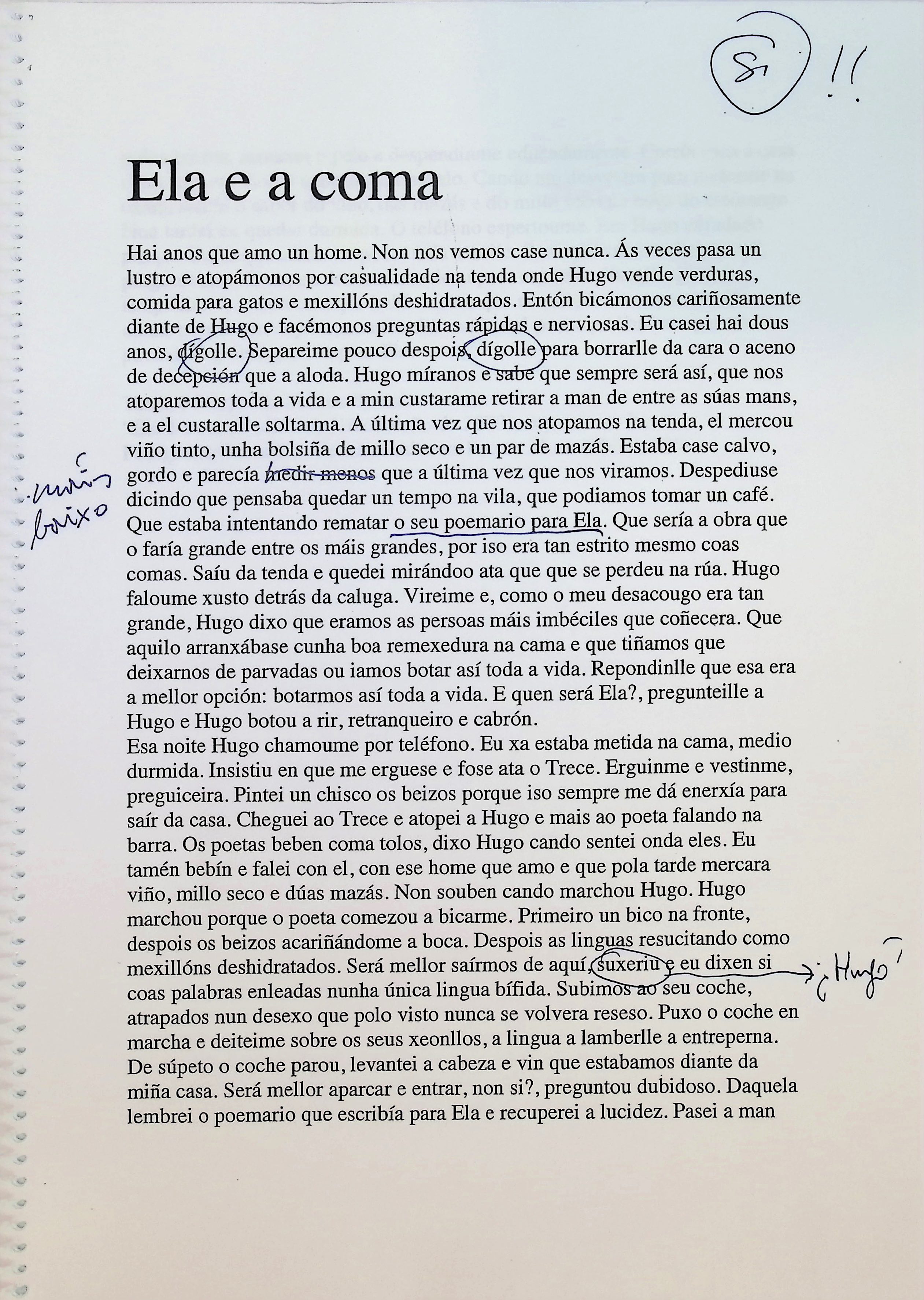 Contido: Conto das fadas de Menlle; apuntes para relato “A única duna e nós entre elas”; relato sen título.