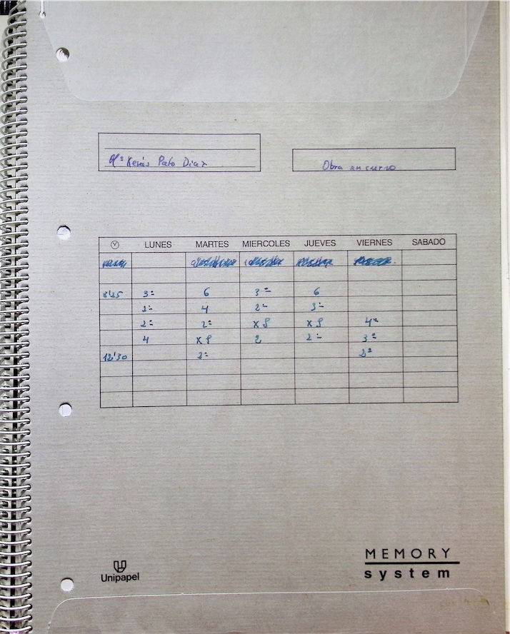 Formato: caderno con arame en espiral. 310 x 230 mm
