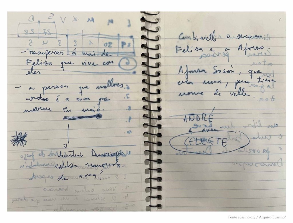 O caderno “Algunhas casas” abrangue de xuño de 2019 a xaneiro de 2020, o dos “Seres queridos” de outubro de 2019 a marzo de 2021 e o titulado “Demetrio Demoscopio” é de marzo 2020. Esta coincidencia cronolóxica parcial é sobranceira xa que pon de manifesto unha maneira de compoñer a obra literaria na que a simultaneidade amosa non soamente a unidade da instancia autorial senón a continuidade da materia narrativa malia a diferenciación dos obxectos ficcionais, continuidade que queda manifesta incluso pola súa disposición en diferentes cadernos coetáneos.