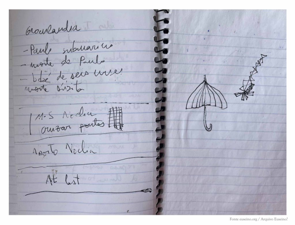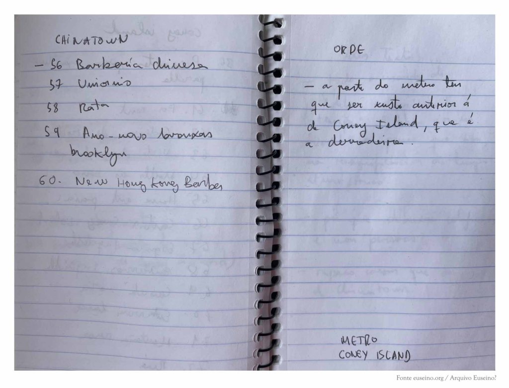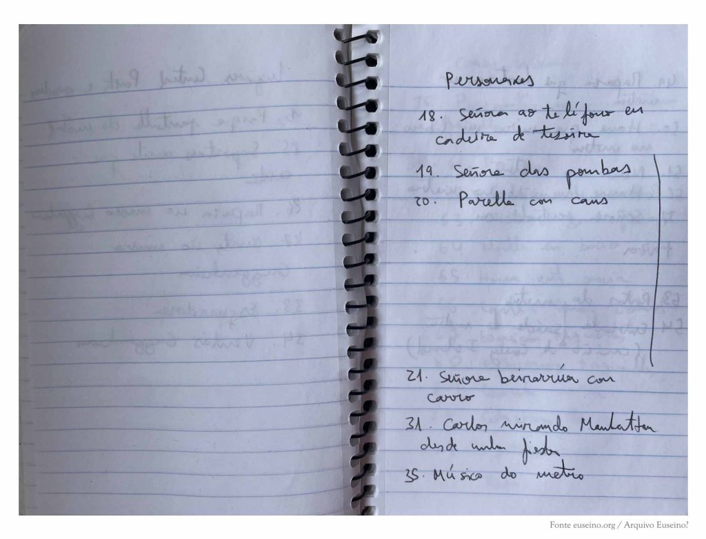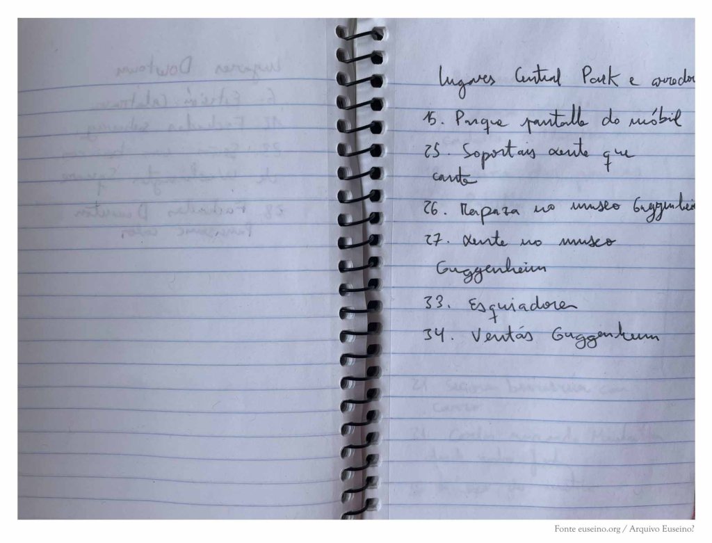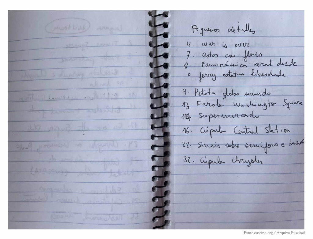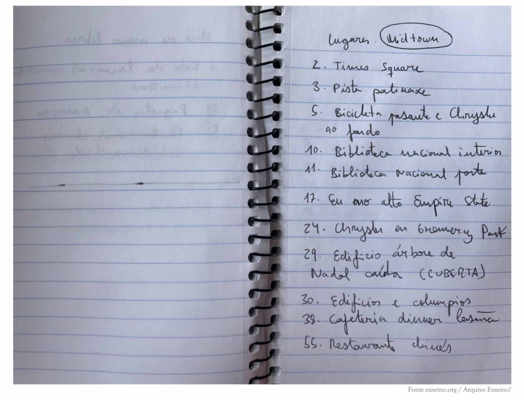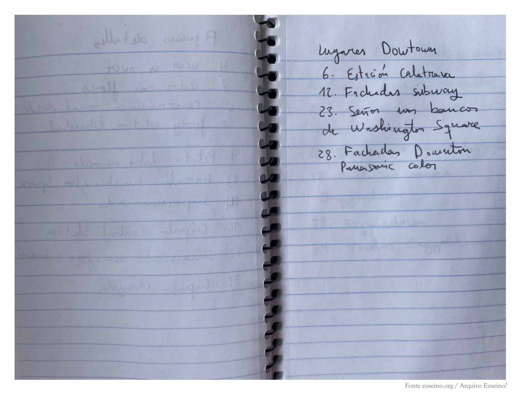 A continuación, o caderno recolle algunhas notas que trataban de ordenar os materiais do libro de debuxos Pequeno álbum de Nova York en inverno (Rodolfo e Priscila, 2021).