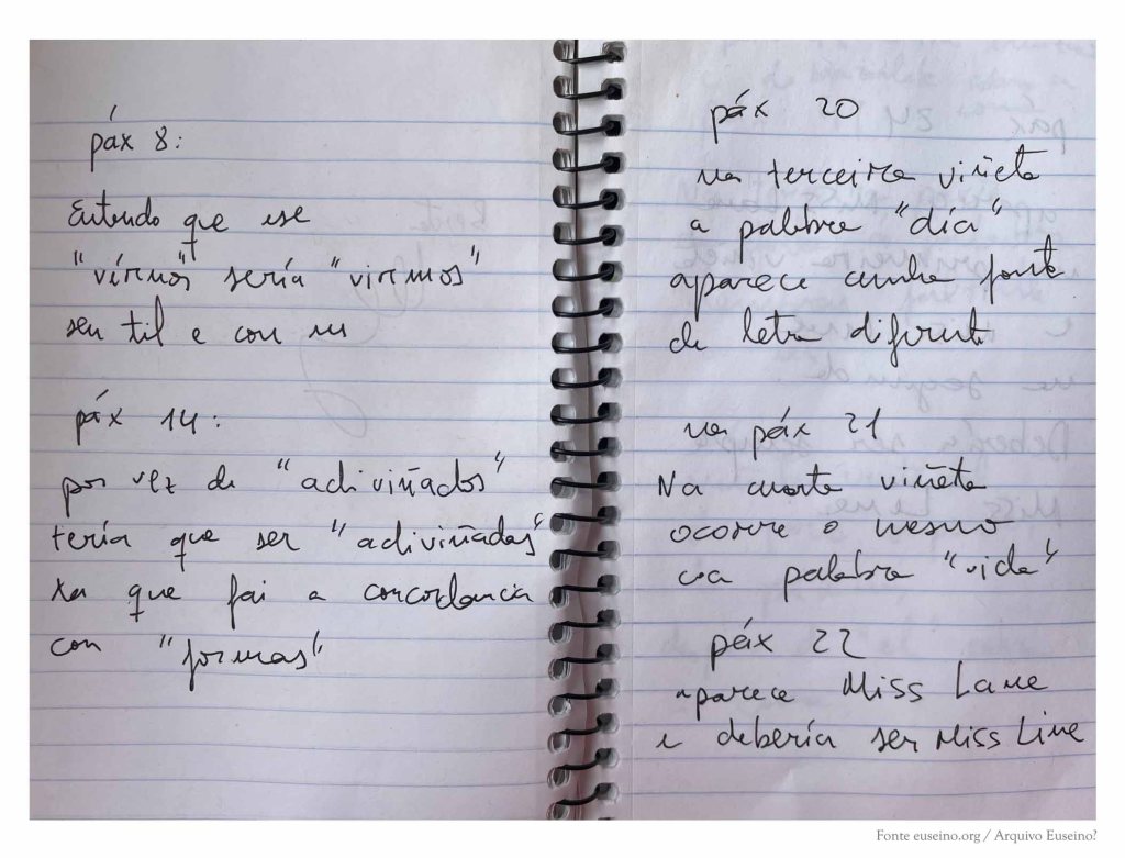 Nas páxinas que seguen, están as anotacións que se corresponden coa revisión da primeira edición da novela gráfica de O derradeiro libro de Emma Olsen (Editorial Galaxia, 2020) para a corrección deses erros de cara á 2ª edición do libro.