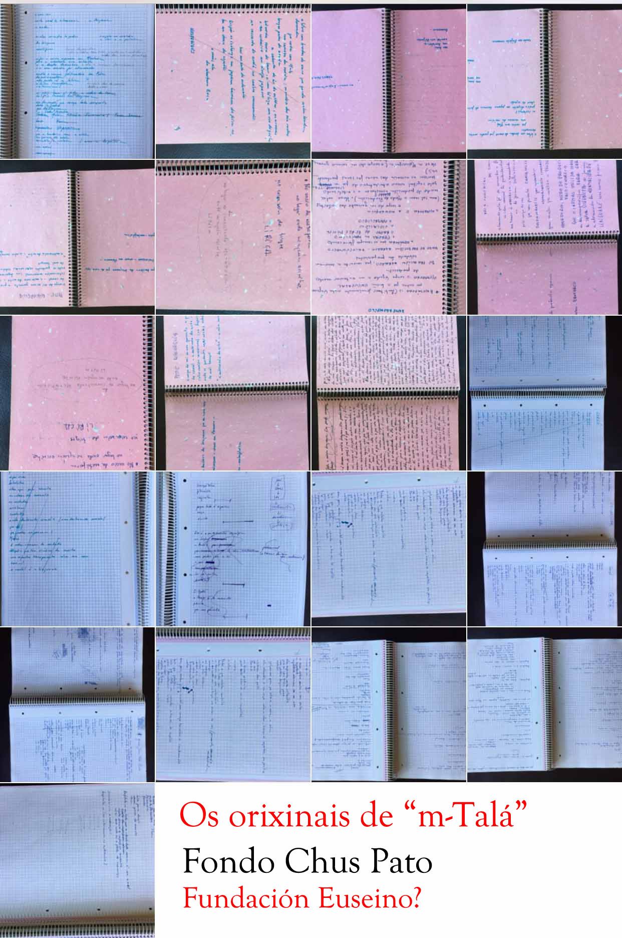 Pode consultar os orixinais manuscritos de m-Talá nos cadernos de notas que forman parte do Fondo Chus Pato da Fundación Euseino? Cunha microdoazón de 1 euro, ou outra superior que vostede escolla.