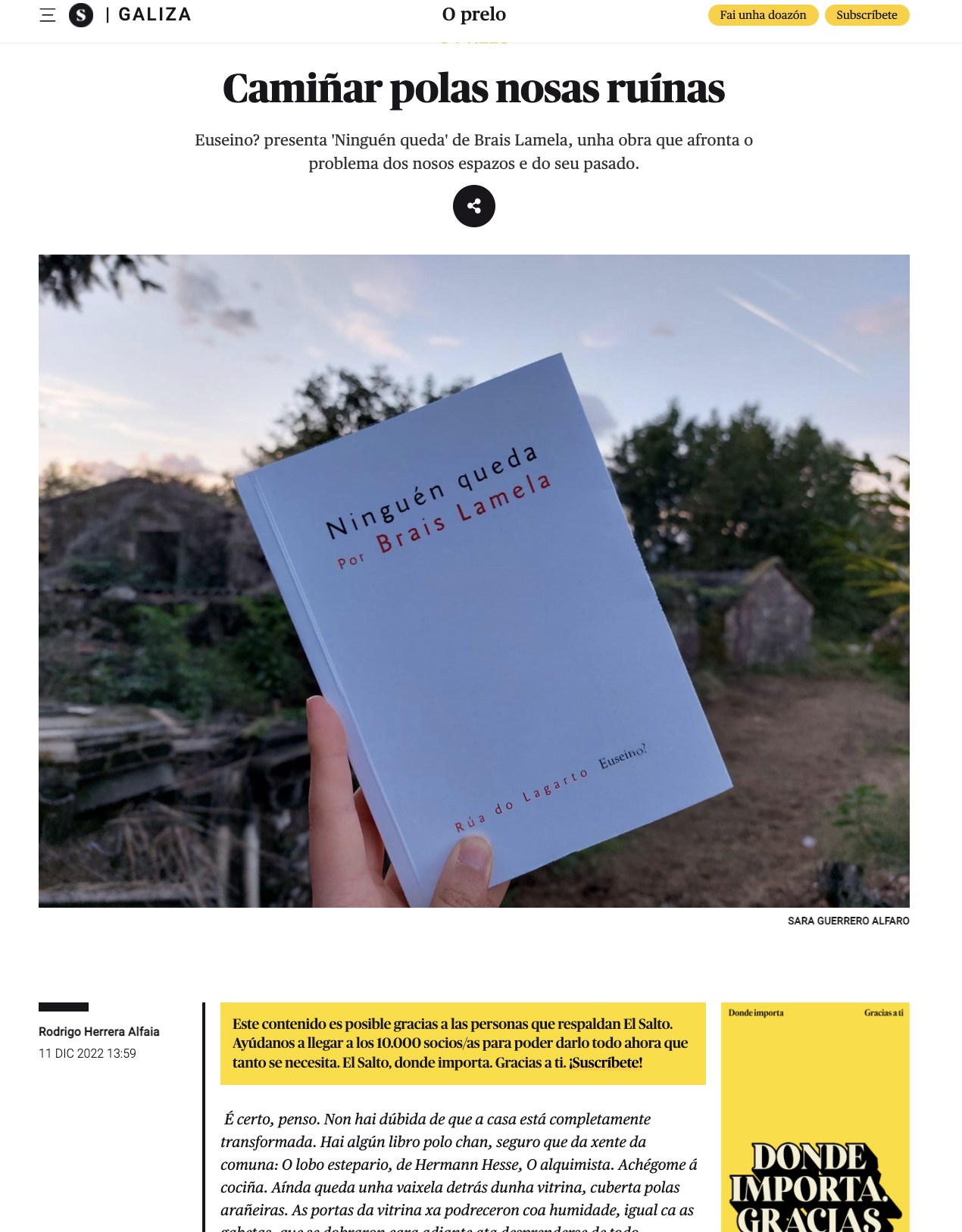 Camiñar polas nosas ruínas, por Rodrigo Herrera Alfaia, El Salto – Galiza, 11-XII-2022.