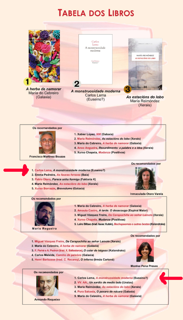 Cómpre clarexar que Carlos Lema non forma parte do Colectivo Maiakovski nin estaba ao tanto de que un verso escrito por el ía encabezar o poemario. Agradece moito, segundo nos prega fagamos constar, que se prestase atención á súa obra e que esta cita servise para dar pé a un proxecto literariamente tan ambicioso.