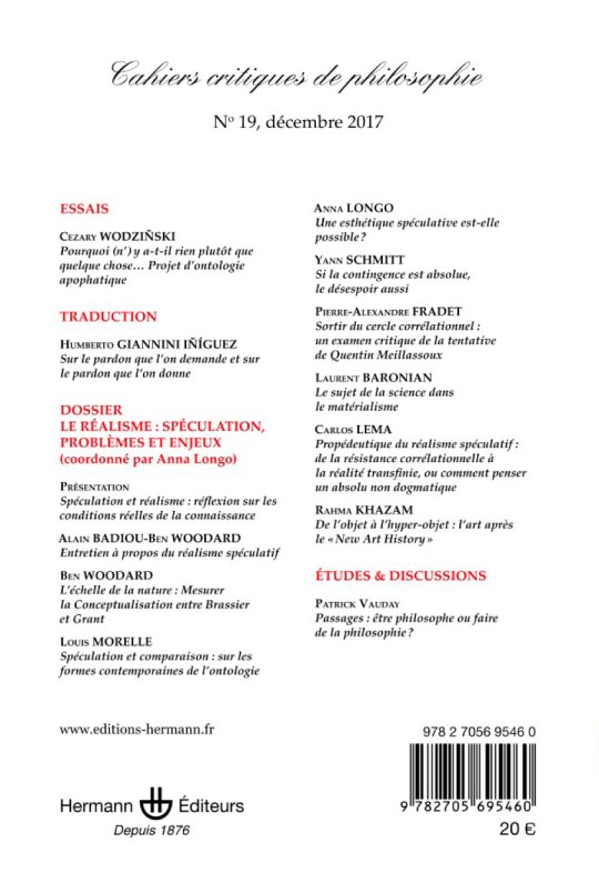Este volume ten como obxectivo a comparar dúas formas moi diferentes de realismo poskantiano: unha defendida por Meillassoux, que propón o rexeitamento de Kant (mais […] un rexeitamento que intenta rachar coas constricións kantianas desde dentro máis ca superalas completamente), e outra a que propón Sellars ao facer compatibles as estruturas kantianas cos contidos científicos realistas. Así, por exemplo, dous tipos de posicións realistas se poden inferir do recoñecemento da facticidade ou continxencia das nosas estruturas cognitivas: o tipo que defende Meillassoux, no que o feito da súa continxencia acaba sendo extrapolado a unha perspectiva ontolóxica […], e o tipo que defende Sellars, no que a continxencia acaba por ser recuperada en función da súa capacidade para evolucionar e adaptarse a unha descrición precisa dunha realidade non caótica. Por iso, malia propoñer solucións moi diferentes, Sellars e Meillassoux (e, debería engadir, Kant) comparten o obxectivo de dotar dun senso realista ás posibilidades da ciencia moderna.