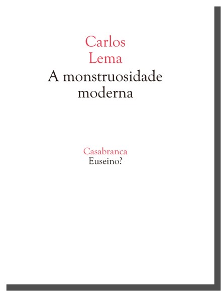 Desde o día 2 de setembro pode atopar nas librerías e na Internet A monstruosidade moderna, o novo libro de Carlos Lema.  Na colección Casabranca, Euseino? Editores pon nas mans de lectoras e lectores a máis novidosa achega do filósofo galego. Seis anos despois da publicación de A música das esferas, o seu libro anterior, o tamén poeta e editor achéganos agora a unha nova concepción da reali­dade que deixa de depender da escisión entre suxeito e mundo.